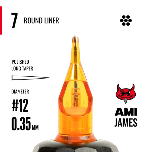 CAM x AMI JAMES Cartridges - Round Liners - #12 (0.35mm) - 20/Box / 7 Round Liner (20/Box) SKU: AC7RL |