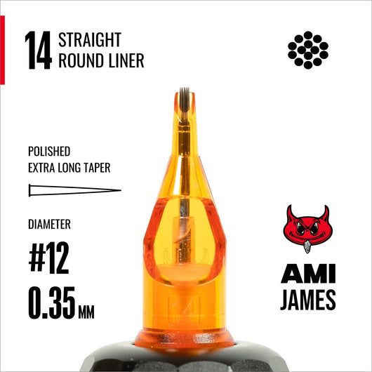 CAM x AMI JAMES Cartridges - Straight Round Liners - #12 (0.35mm) - 20/Box / 14 Straight Round Liner (20/Box)
