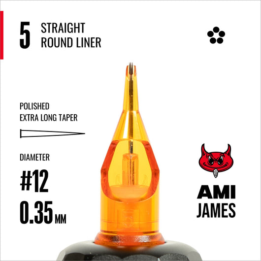 CAM x AMI JAMES Cartridges - Straight Round Liners - #12 (0.35mm) - 20/Box / 5 Straight Round Liner (20/Box)