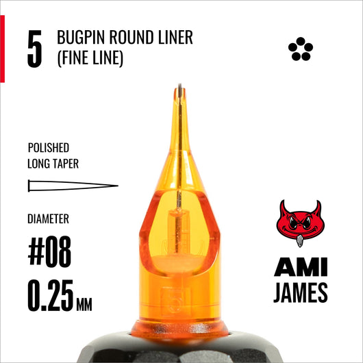 CAM x AMI JAMES Cartridges - Super Bugpin Round Liners - #8 (0.25mm) - 20/Box / 5 Bugpin Round Liner - Fine Line (20/Box) SKU: ACB5RL |
