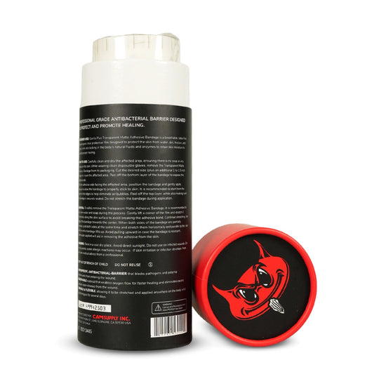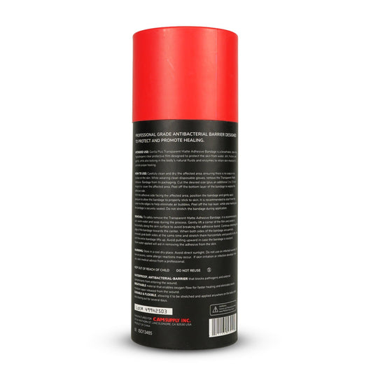Proper protection to promote recovery. Designed to protect and ensure a smooth, clean and healthy recovery process for your tattoos. CAM Transparent Aftercare Bandage acts as a barrier against harmful bacteria, dirt, abrasions, and water. The adhesive bandage adheres to the skin, properly sealing off any water or foreign materials from entering the wound. With a matte-finish PU film layer,